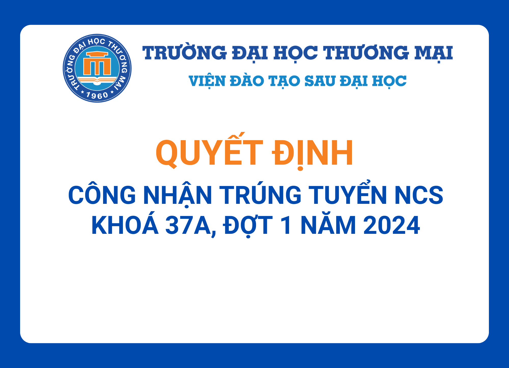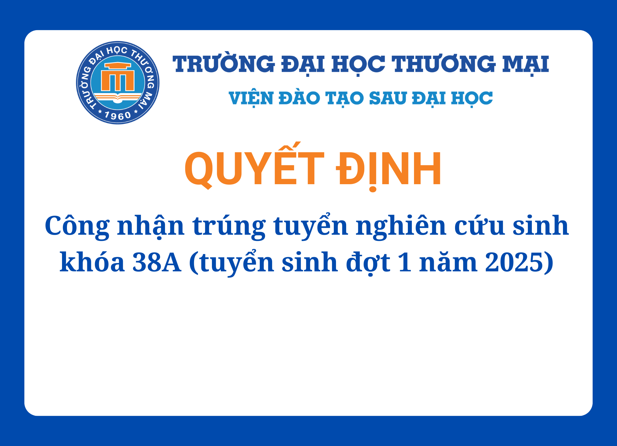Trường Đại học Thương mại ban hành Quyết định số 2104/QĐ-ĐHTM ngày 20/10/2025 công nhận trúng tuyển nghiên cứu sinh khoá 38B (tuyển sinh đợt 2 năm 2025).