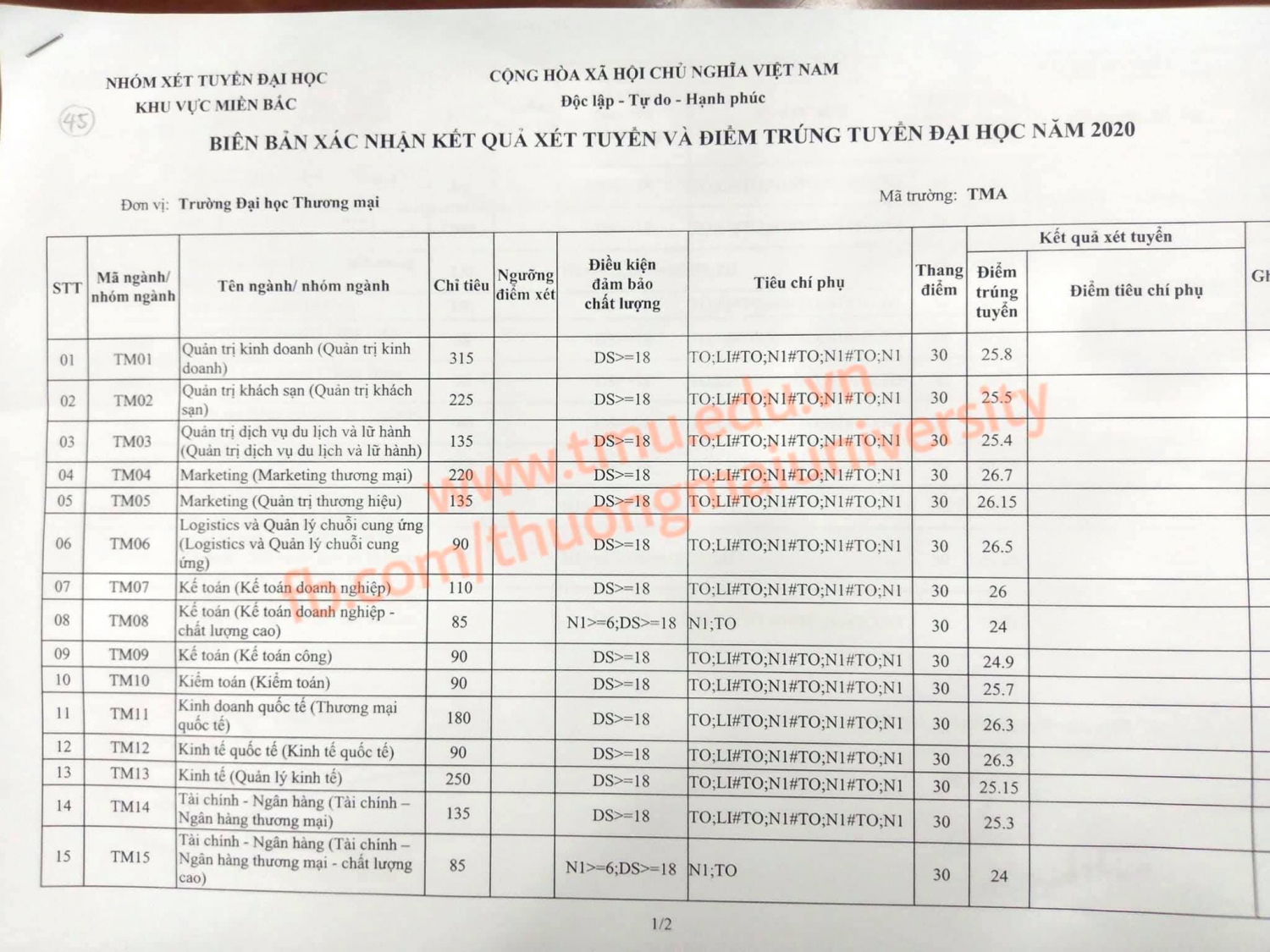 Ngày hôm nay 04/10 Trường Đại học Thương mại đã công bố điểm chuẩn của NGÀNH TMĐT và NGÀNH HTTTQL NĂM 2020