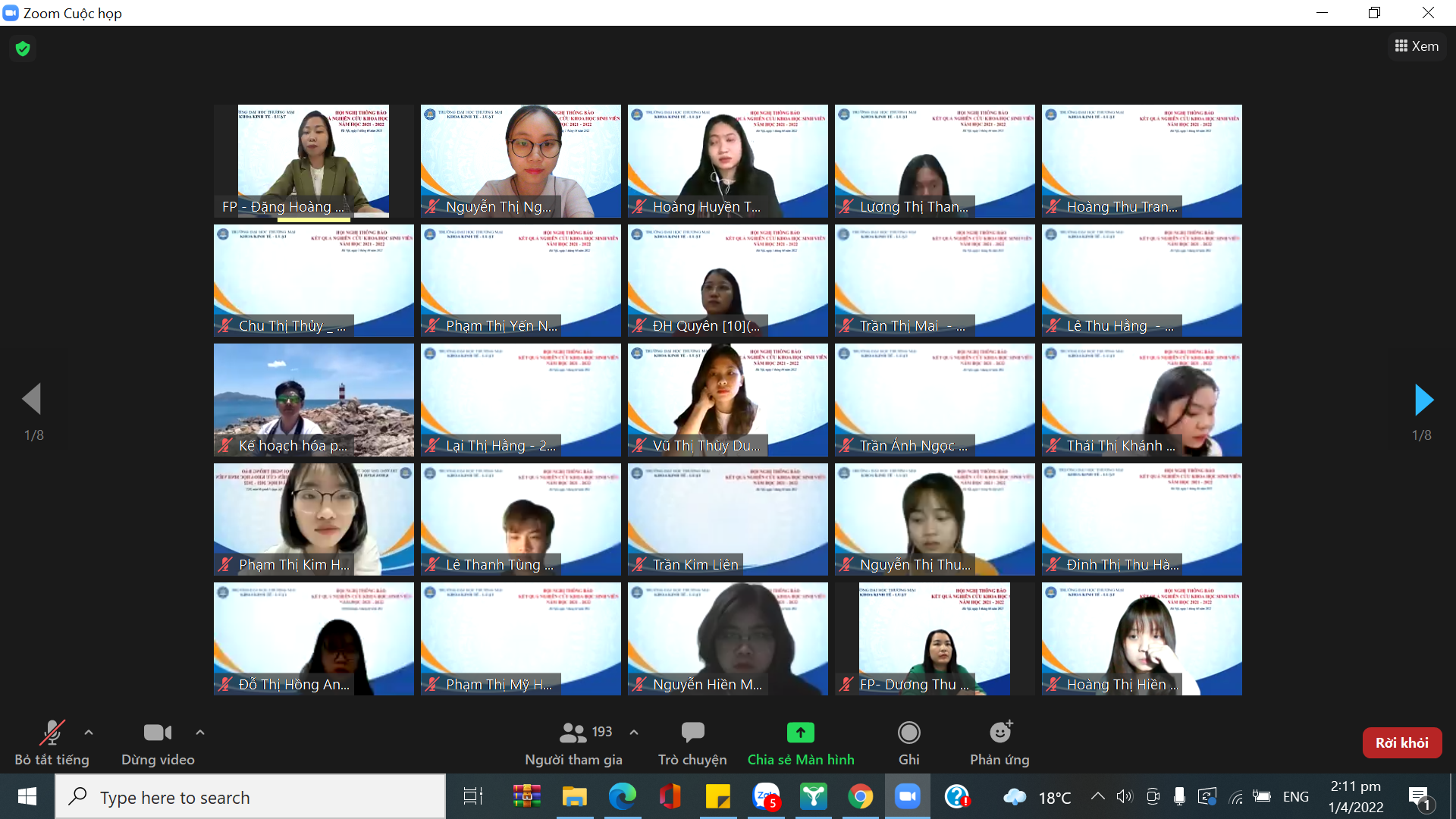 Hội nghị báo cáo kết quả NCKHSV nắm học 2021-2022 khoa Kinh tế - Luật