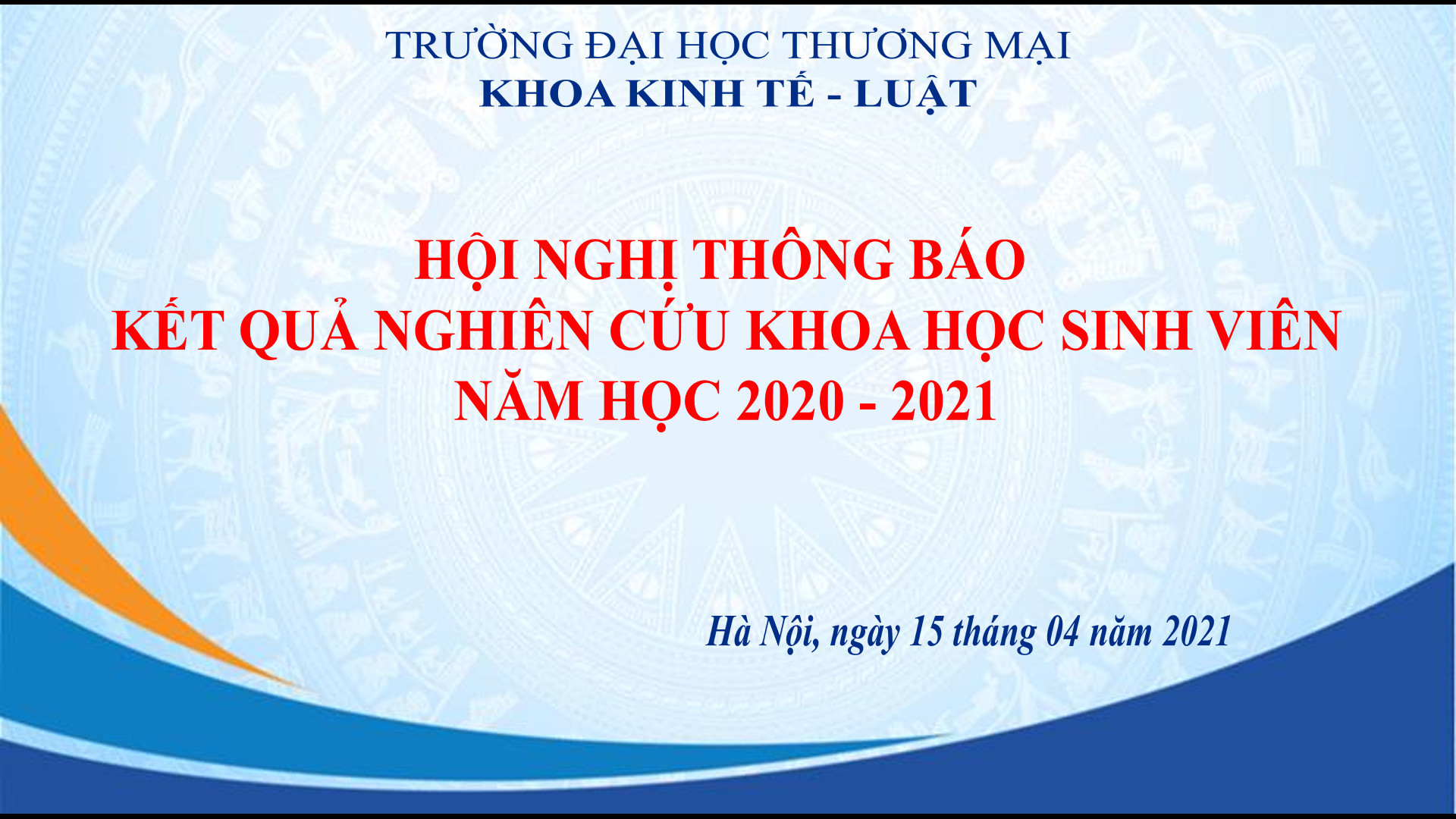 14h ngày 01/4/2022, Khoa Kinh tế - Luật tổ chức online Hội nghị Báo cáo kết quả NCKH SV năm học 2021 - 2022 qua nền tảng Trans. Hội nghị vinh dự đón nhận sự hiện diện của PGS. TS. Hà Văn Sự, Trưởng Khoa Kinh tế - Luật, TS. Trần Việt Thảo, Phó trưởng phòng Quản lý Khoa học và các thầy cô giáo, sinh viên Khoa Kinh tế - Luật