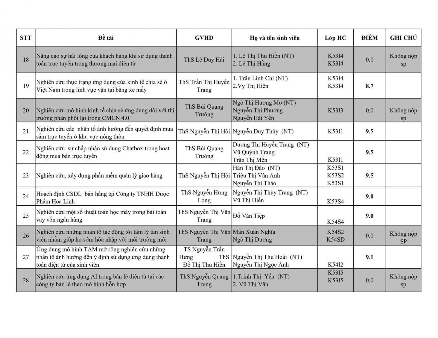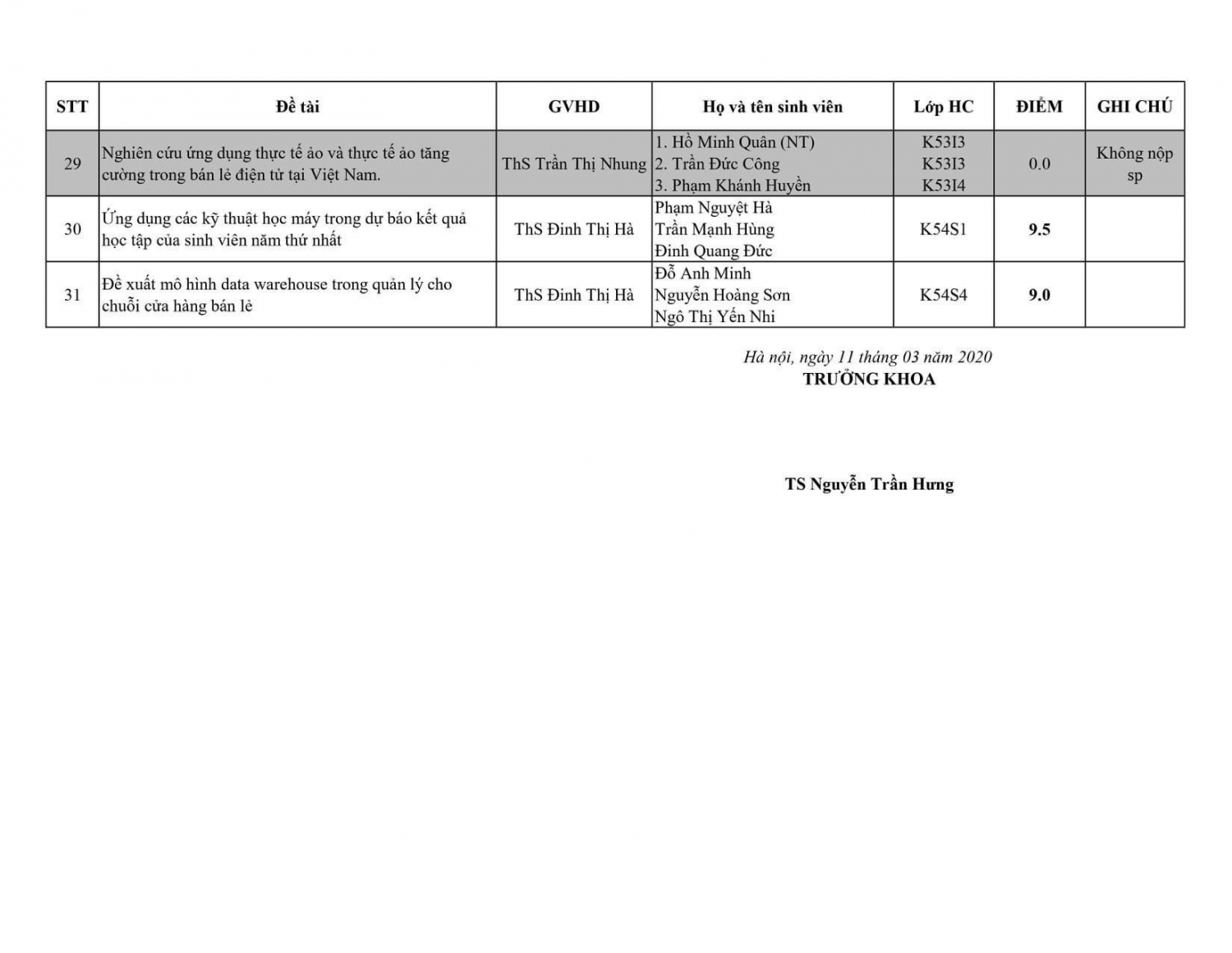 KẾT QUẢ NGHIÊN CỨU KHOA HỌC SINH VIÊN NĂM HỌC 2019-2020 (Cấp Khoa)