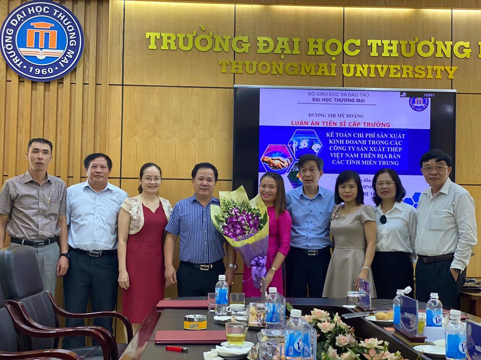 Chiều ngày 22/06/2020, tại phòng họp số 2 nhà I, Trường Đại học Thương mại đã tổ chức Lễ bảo vệ luận án tiến sĩ cho nghiên cứu sinh Dương Thị Mỹ Hoàng, chuyên ngành Kế toán (mã số 9340301), đề tài luận án “Kế toán chi phí sản xuất kinh doanh trong các công ty sản xuất thép Việt Nam trên địa bàn các tỉnh miền Trung” với sự hướng dẫn khoa học của PGS,TS. Đỗ Minh Thành và PGS,TS. Hà Thị Thúy Vân.