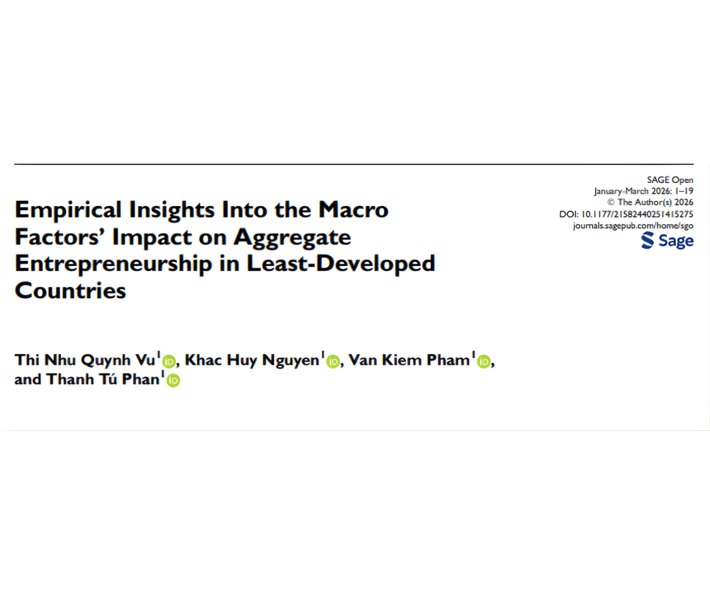Công bố quốc tế này là minh chứng cho năng lực nghiên cứu quốc tế ngày càng được khẳng định của đội ngũ cán bộ Trung tâm Nghiên cứu và Phát triển Khoa học Công nghệ, Trường Đại học Thương mại, đồng thời thể hiện định hướng nghiên cứu liên ngành giữa kinh tế giáo dục, kinh tế phát triển và phúc lợi xã hội.