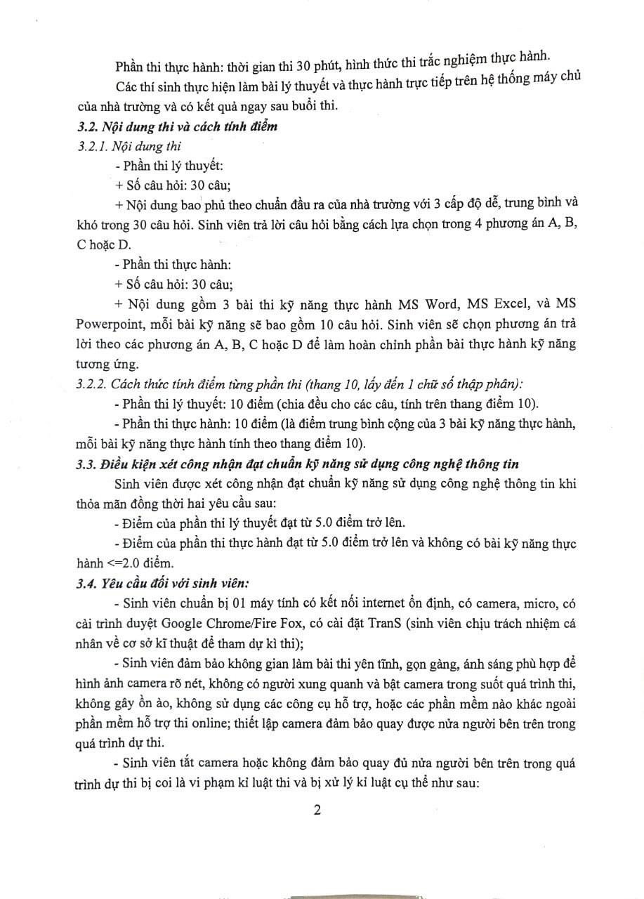 Thông báo về lịch thi đánh giá chuẩn kỹ năng sử dụng công nghệ thông tin cho sinh viên đại học chính quy, đợt tháng 12 năm 2021. Thời gian: từ 28/12/2021 đến 31/12/2021