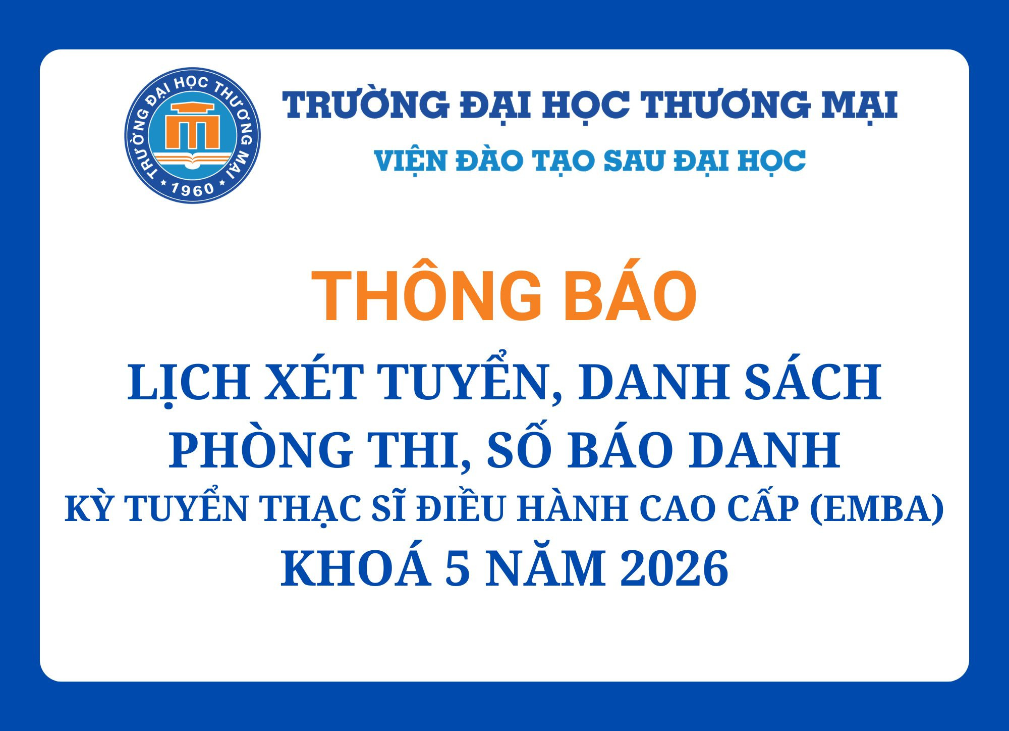 - Thời gian xét tuyển (dự kiến): Chủ Nhật, ngày 19 tháng 4 năm 2026 tại Trường Đại học Thương mại.
