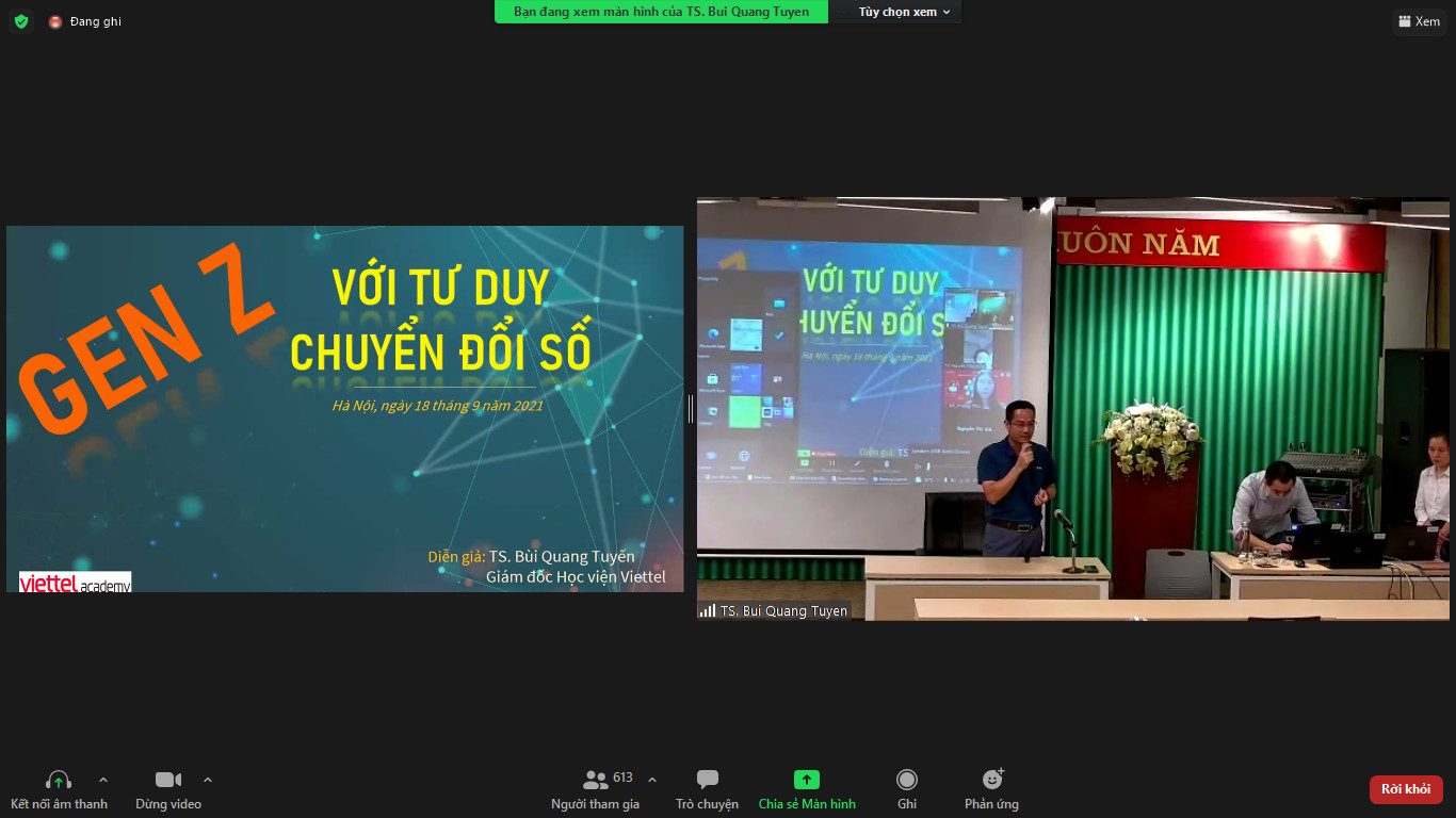 Đặc biệt, diễn giả của chương trình, Tiến sỹ Bùi Quang Tuyến, Giám đốc Học viện Viettel, thuộc Tập đoàn Công Nghiệp Viễn thông Quân đội. Với bề dày kinh nghiệm công tác và quản lý ở nhiều vị trí khác nhau tại Tập đoàn Viettel, đồng thời là giảng viên thỉnh giảng ở một số trường đại học lớn của Việt Nam, diễn giả đã chia sẻ những kiến thức rất bổ ích cho các bạn sinh viên, thế thệ Gen Z.